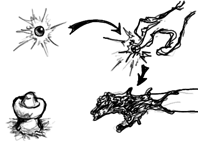 手を入れると、球体が粘液のようになってベタベタと手を包み込んできた(マトリックスのスミスが相手を取り込む時のような黒いオイルのような感じ)
